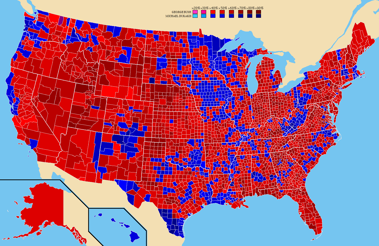 Bush 53.4%, Dukakis 45.6%