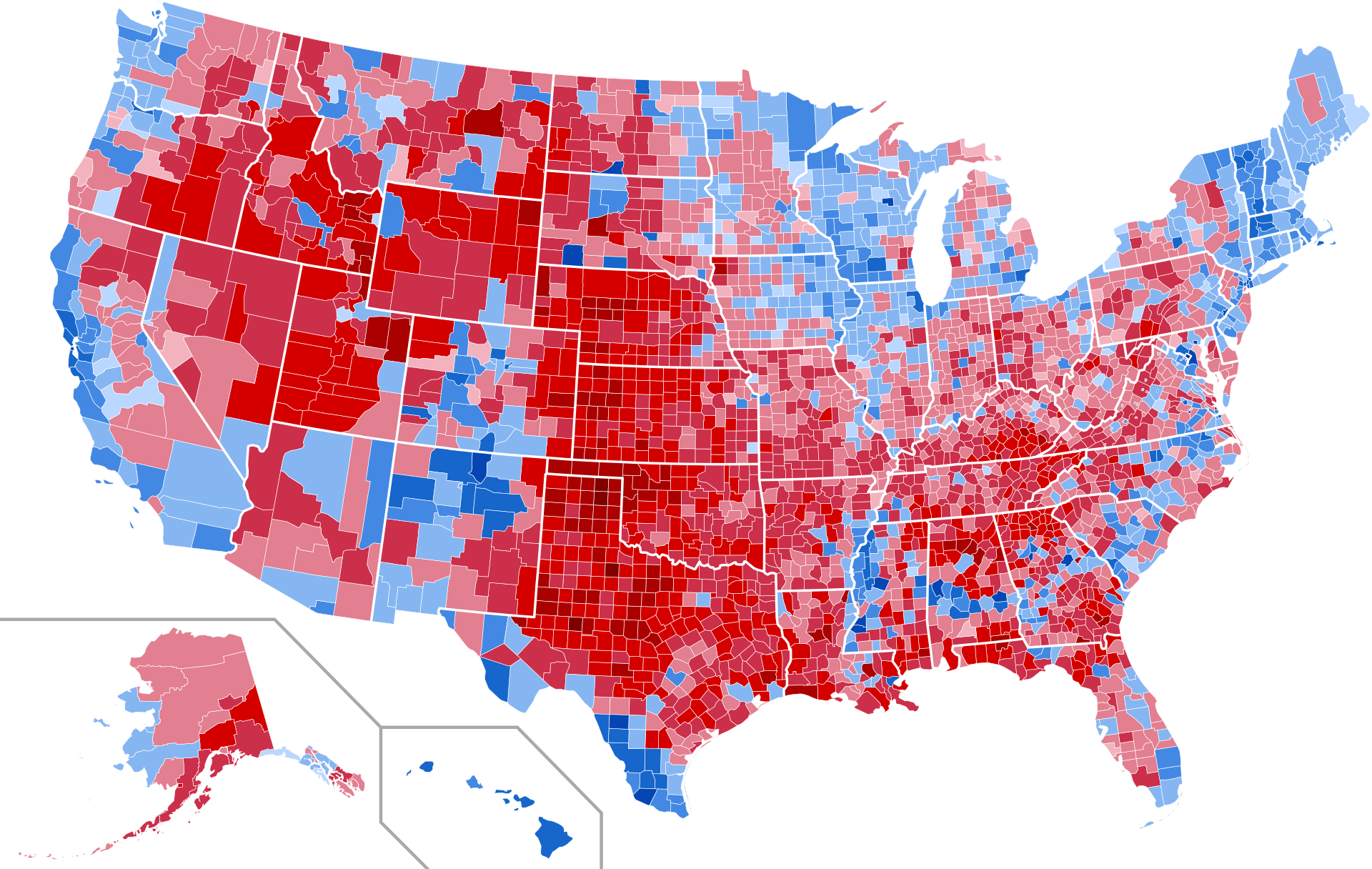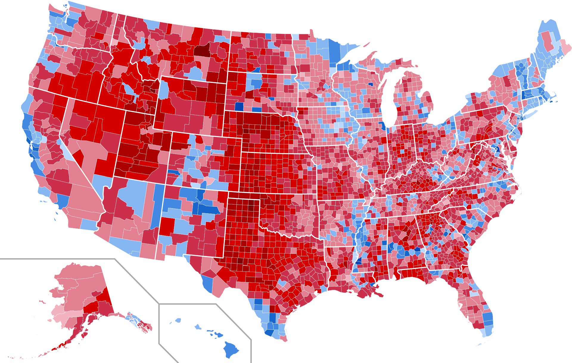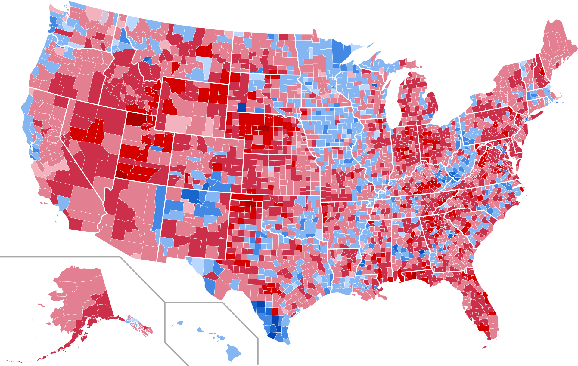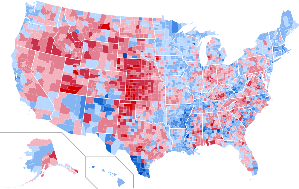 My observation on the pictorial representations of the United States geographical voting patterns is that it’s not very hard to see the swinging of the partisan political pendulum in those graphics.