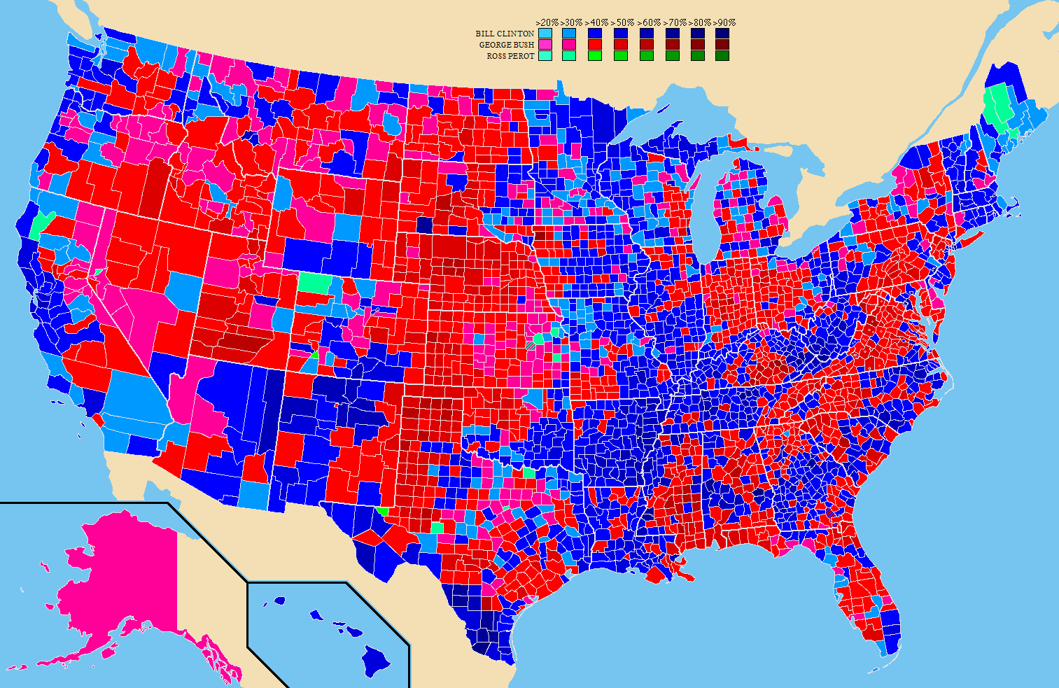 Clinton 43.0%, Bush 37.4%, Perot 18.9%