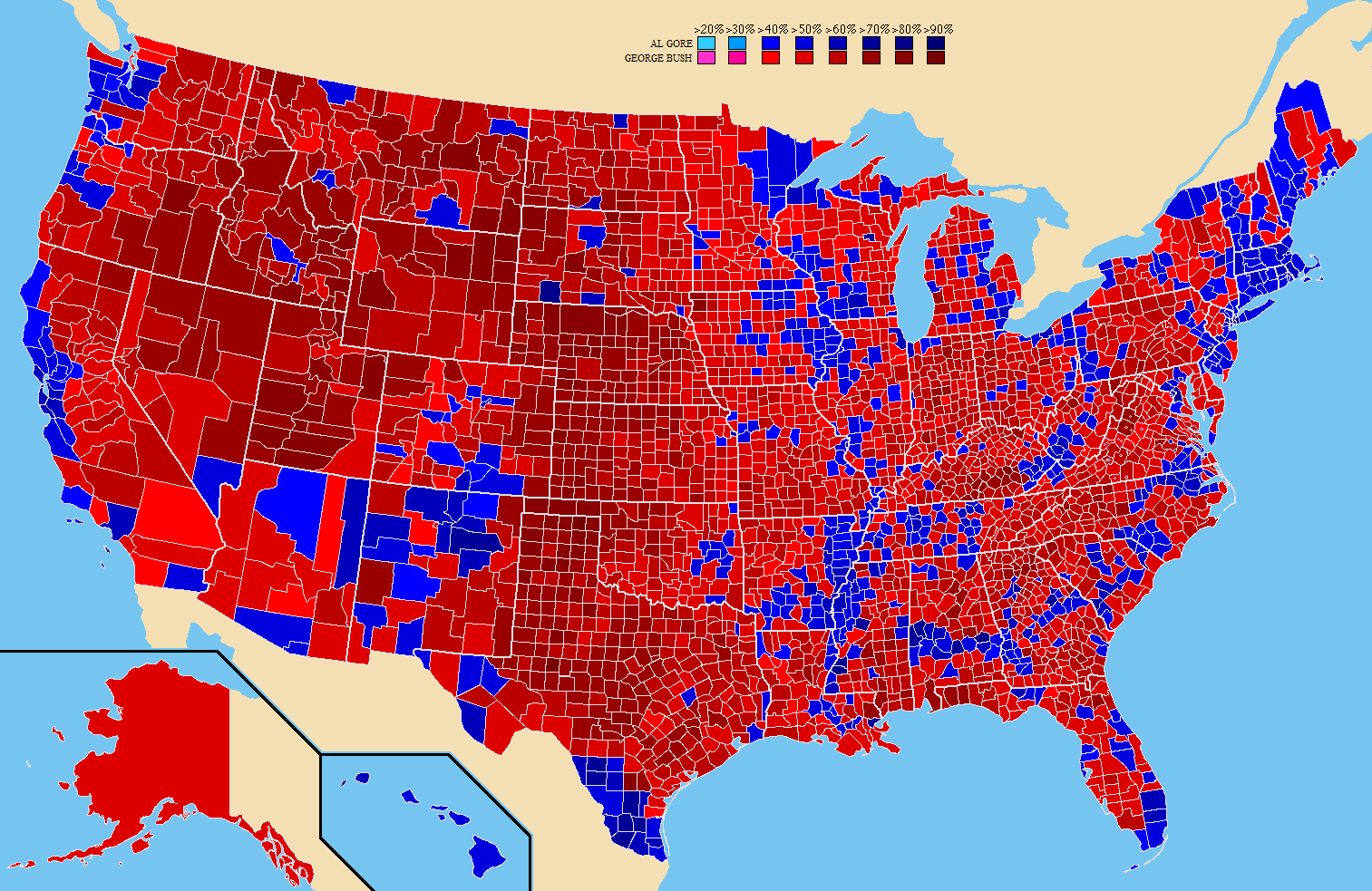 Bush 47.9%, Gore 48.4
