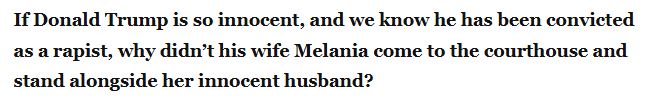Here’s just one example of a false Trump is a convicted rapist statement. The Madison, WI area blogger Gregory Humphrey of Caffeinated Politics posted on May 30, 2024 the following sentence in one of his routine Trump Deranged Syndrome (TDS) diatribes, this one he titled “Donald Trump Found Guilty On All 34 Felony Charges, Newspaper Front Pages On CP Friday” .